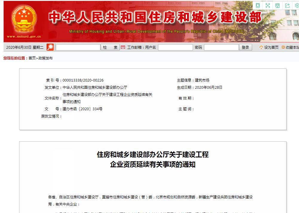 一、我部核發(fā)的工程勘察、工程設(shè)計(jì)、建筑業(yè)企業(yè)、工程監(jiān)理企業(yè)資質(zhì),資質(zhì)證書有效期于2020年7月1日至2021年12月30日屆滿的,統(tǒng)一延期至2021年12月31日。